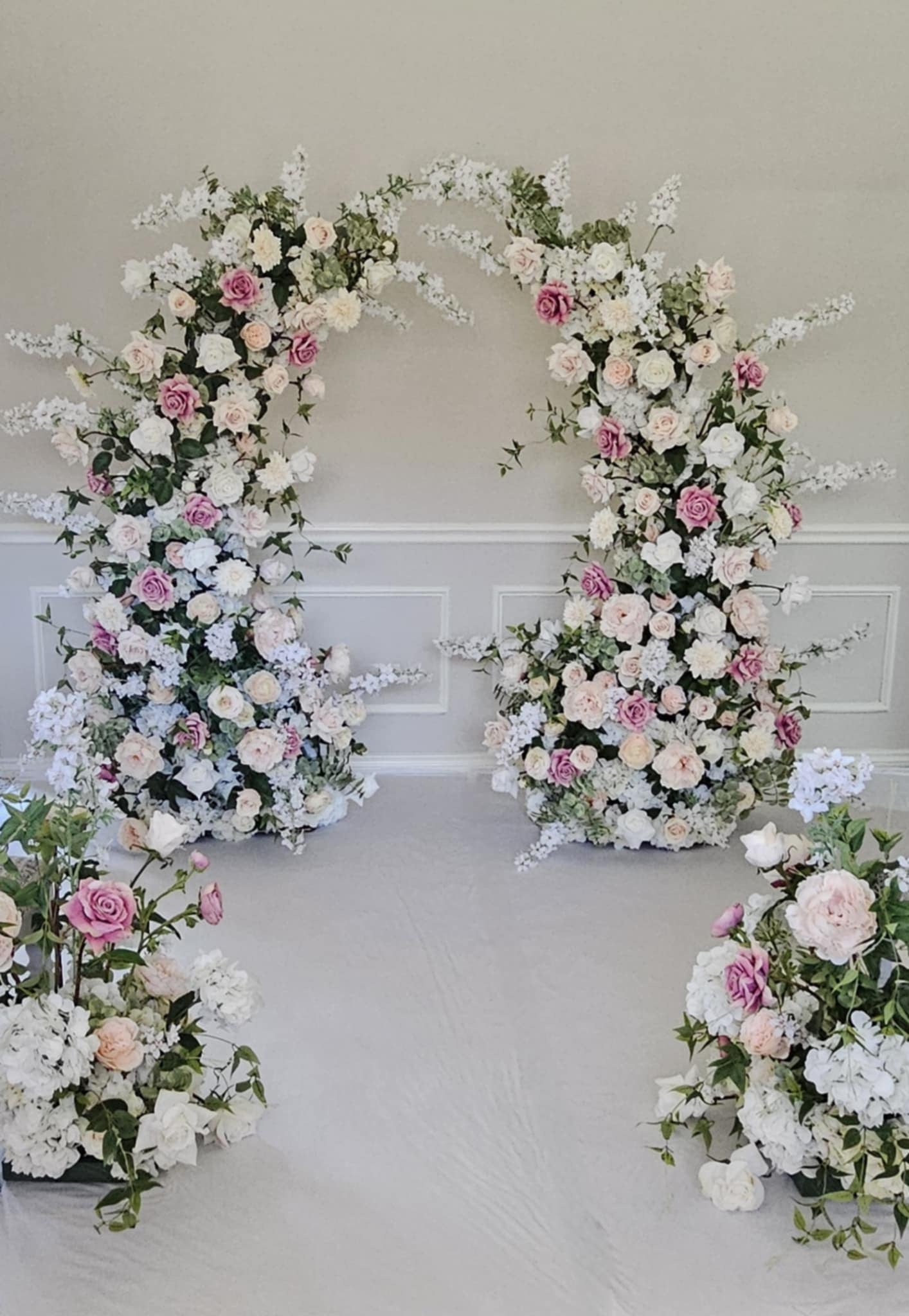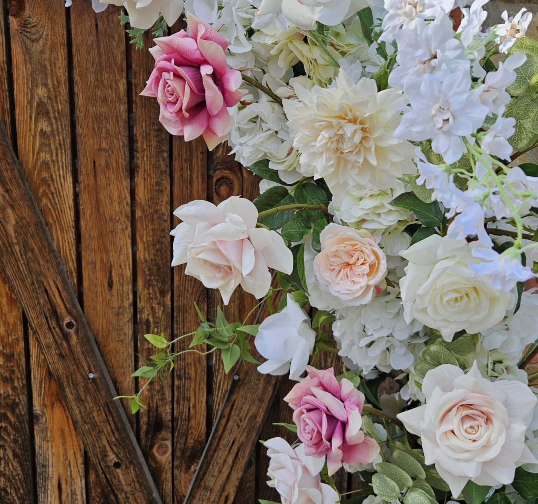 Our arches and floral designs are made with the highest quality real touch flowers. Click the button below to learn more about our small floral business and our flowers!
